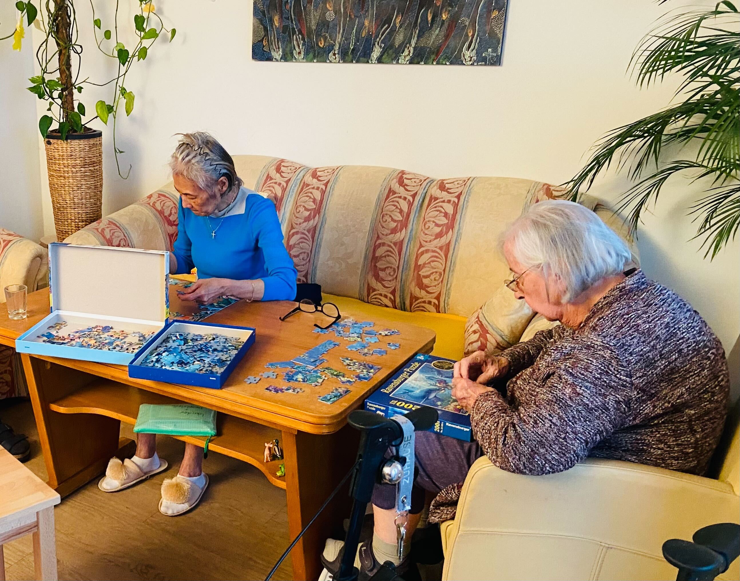 Mit diesen Bildern und Videos möchten wir Ihnen einen persönlichen Eindruck vom Leben in unserer Demenz-Wohngemeinschaft geben. Sie zeigen, wie unsere Bewohner*innen den Alltag gestalten, von gemeinsamen Aktivitäten bis hin zu kleinen Momenten des Miteinanders. Viel Freude beim Anschauen!